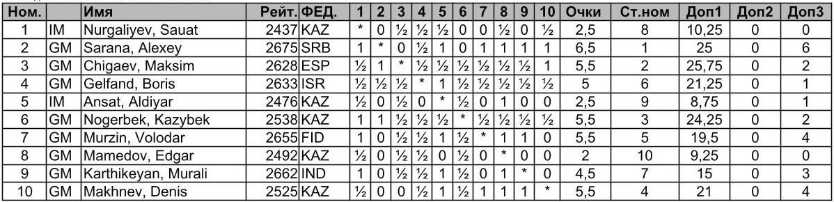 1. GM Алексей Сарана (2675, Сербия) – 6½ очка (₸7 млн);